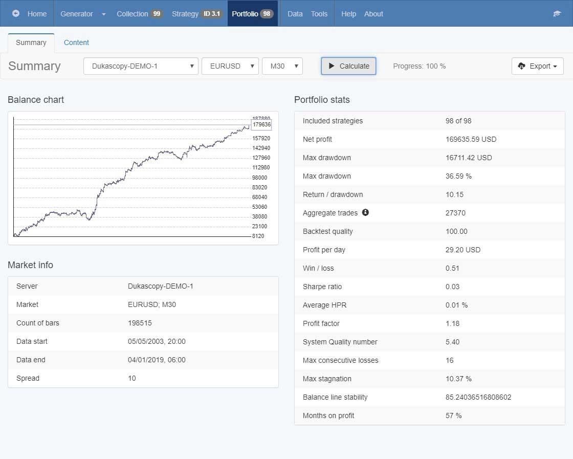 Forex Robot Factory is a new and easy way to automate the workflow of trading strategy programming, backtesting, optimizing and stress testing. The online software automatically generates new unique trading strategies (expert advisors) for any instrument- FX, Stocks or Equities etc. The core value of the tool is powerful ONLINE backtesting engine that lets you perform data mining on historical market data.
